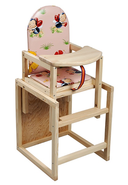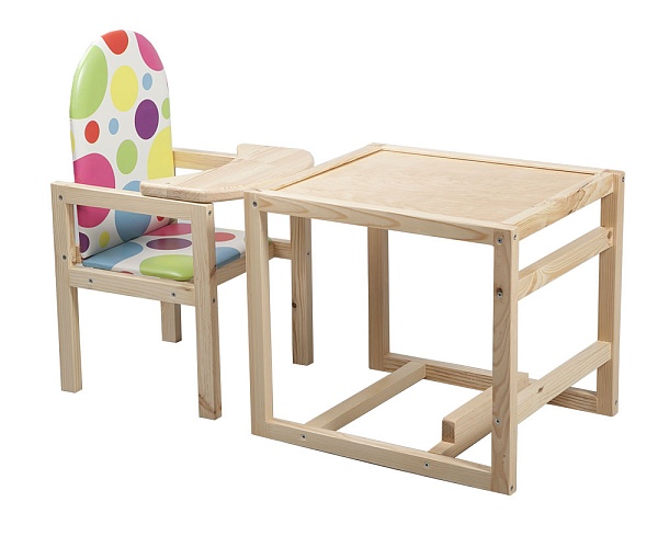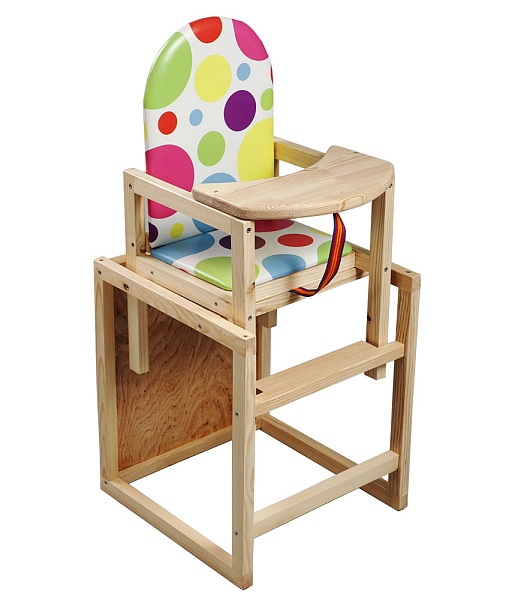 Стульчик для кормления Стс-1 - удобный стульчик для кормления трансформер. Трансформируется в отдельные столик и стульчик для деток постарше. Удобная высокая спинка. Столешница съемная, ламинированная,по мере взросления ребенка можно снять поднос и подвинуть стульчик к взрослому столу. Мягкий чехол сиденья изготовлен из непромокаемого материала, легко моется.