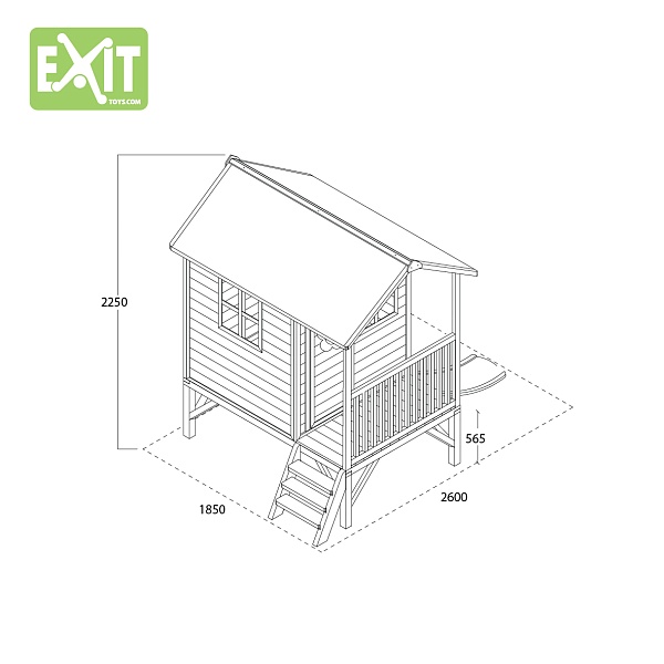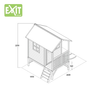Игровой домик со ступеньками, маленькой верандой и горкой станет идеальным местом для игр самых маленьких детей на загородном участке. Конструкция не требует специальных креплений и устанавливается на дачном участке самостоятельно. Высота домика – 260 см, ширина – 180 см, длина – 210 см. Домик довольно устойчивый и выдерживает сразу несколько детей с массой тела, не превышающей 80 кг. В качестве материала производитель выбрал легкую и износостойкую сосну, и покрыл ее антисептическим раствором, увеличивающим сроки службы. Домик не имеет острых углов и шероховатостей, поэтому безопасен даже для малышей.