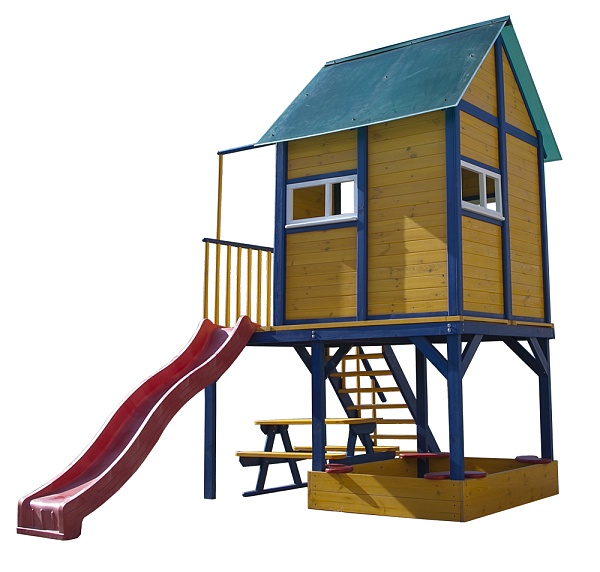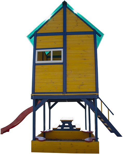 Дом будет прочным, так как сделан из натурального дерева сосны, обработанной антисептиком. Он не боится ветров и дождей, поэтому в нем можно безопасно прыгать и веселиться. Буковые перекладины в сосновом домике оградят ребят от падения. Турники по краям перил позволят проводить время не только весело, но и с пользой. Для ребят помладше под игровым домиком расположена песочница с четырьмя удобными сиденьями. Рядом с песочницей находится столик со скамьями, где можно прекрасно провести время, пообщаться и поиграть в настольные игры, собрав всех друзей. Ребята оценят по достоинству горку –одно из любимейших детских развлечений.