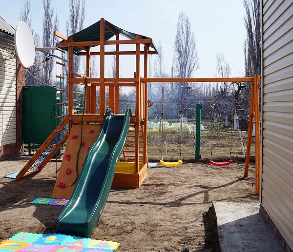 Детская горка длина - 3 метра (красная, синея, зеленная) Качели 2 шт. (красные,зеленые) или деревянные. Горка для скалолазание. Канат Веревочная лестница. Гладиаторская сетка. Детская песочница. Возможно изготовление по индивидуальным размерам в различной комплектации и цветовой гамме. Производитель оставляет за собой право вносить в конструкцию изменения, не ухудшающие эксплуатационные характеристики изделия.