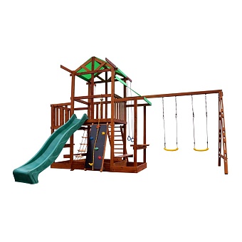 Детский игровой комплекс для дачи - идеальное место для отдыха ребенка. Такая яркая и оригинальная конструкция сделает досуг детей веселым и полезным. Она является безопасной и надежной, а также отвечает самым высоким стандартам качества. У нас детский игровой комплекс для дачи купить можно по выгодной цене. Более того, это не только место для игр, но и целый набор спортивных элементов, где ребенок будет получать полноценную физическую нагрузку. Снаряд представляет собой двухэтажную спортивно-игровую площадку, где есть все необходимое, чтобы малыш физически развивался и активно отдыхал: трехметровая горка для катания, 2 качели, кольца и горка для скалолазания. Есть также деревянная и веревочная лестница. Снаряд изготовлен из сосны, обработанной антисептиком, а все поверхности изделия тщательно отшлифованы. Благодаря высокому качеству и функциональности, на детский игровой комплекс для дачи отзывы положительные и он пользуется большим спросом. Сооружения не требует дополнительного крепления. Данная площадка действительно станет настоящим украшением любого двора. Здесь для любого ребенка найдется занятие и развлечение. Если Вас устраивает на детский игровой комплекс для дачи цена , мы очень рекомендуем приобрести его, так как это самый лучший подарок для детей. Этот снаряд подарит приятные эмоции каждому ребенку и даст возможность быть здоровым, сильным и активным.