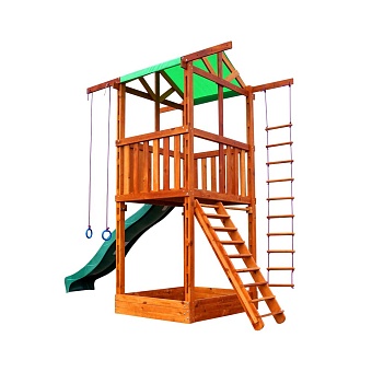 Деревянный домик с горкой станет излюбленным местом детских игр. Ведь здесь можно почувствовать себя настоящим путешественником и искателем приключений. А дополнив базовую комплектацию дополнительными элементами, можно заметно разнообразить детский досуг, предложив помимо традиционной активности ещё и гимнастические развлечения. Гармоничное развитие ребёнка - залог его здоровья и хорошего настроения. Деревянный домик с горкой подарит вашим детям возможность развиваться, играя.