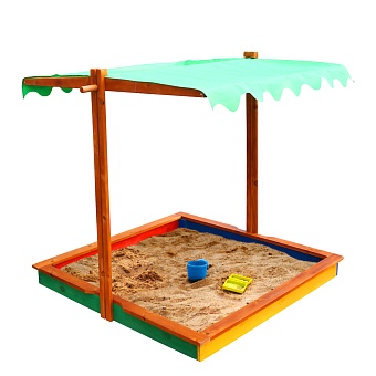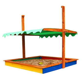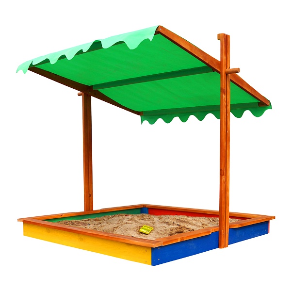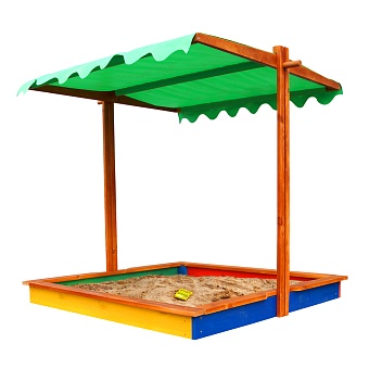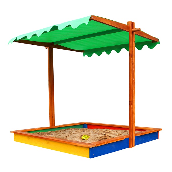 В её продуманной до мелочей классической конструкции нет ничего лишнего, а изюминкой изделия является покатая регулируемая тентовая крыша, наличие который трудно переоценить. В жару она убережёт вашего ребёнка от перегрева, а ночью защитит песок от загрязнений животными.
