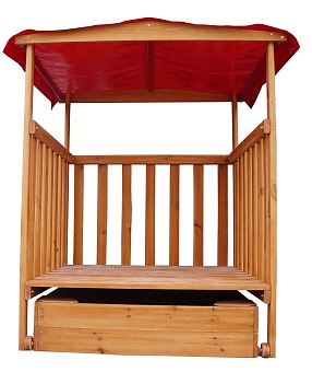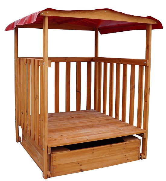 После игр и развлечений песочница легко прячется под беседку, тем самым обеспечивается защита песка от загрязнений и влаги, и освобождается место на земельном участке.