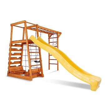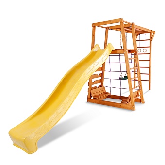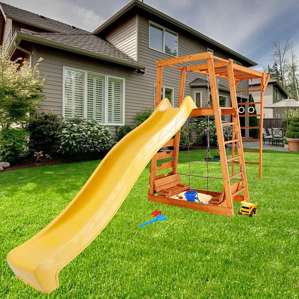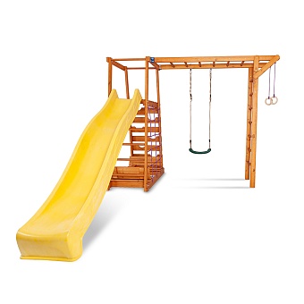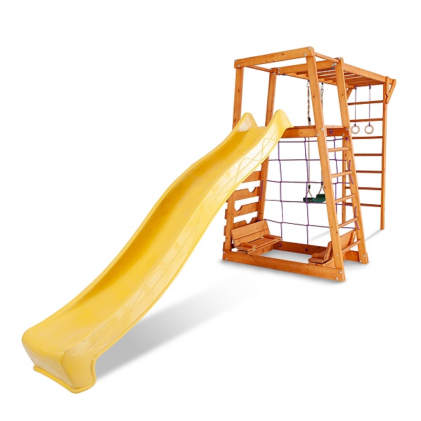 1. Площадка с лестницей. 2. Детская горка длина - 3 метра (красная, синяя, зеленая, желтая). 3. Качели 2 шт. (красные, зеленые) или деревянные. 4. Рукоход. 5. Кольца. Возможно изготовление по индивидуальным размерам в различной комплектации и цветовой гамме. Производитель оставляет за собой право вносить в конструкцию изменения, не ухудшающие эксплуатационные характеристики изделия.