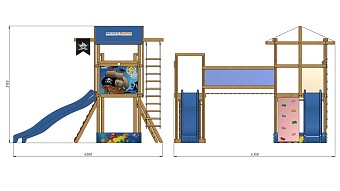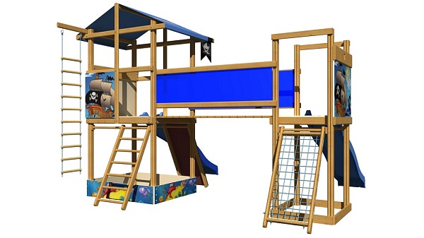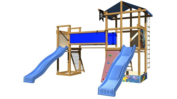 1. Башня с песочницей. 2. Детская горка длина - 3 метра (красная, синяя, зеленая, желтая). 3. Скалолазка. 4. Лестница. 5. Площадка с гладиаторской сеткой. 6. Мостик. 7. Веревочная лестница. Возможно изготовление по индивидуальным размерам в различной комплектации и цветовой гамме. Производитель оставляет за собой право вносить в конструкцию изменения, не ухудшающие эксплуатационные характеристики изделия.