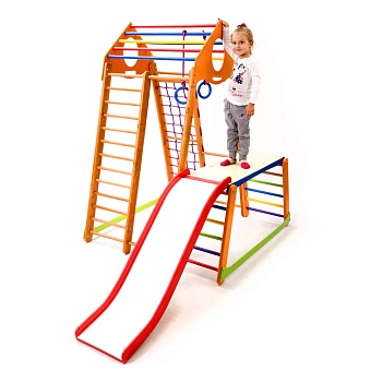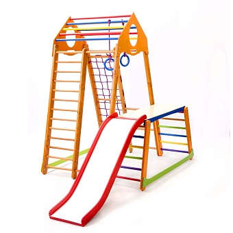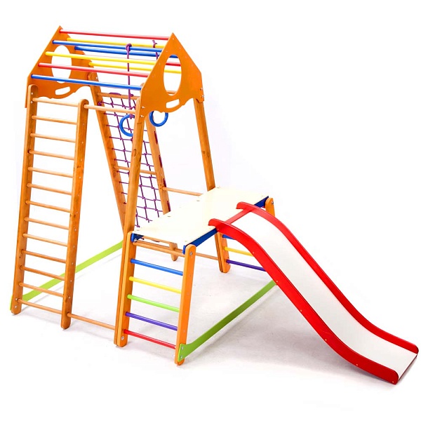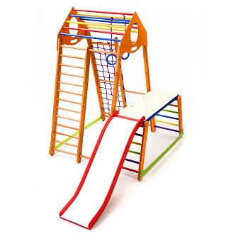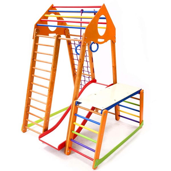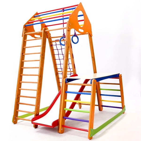 Мы представляем наш спорткомплекс BambinoWood Plus 1-1, который предназначен для детей дошкольного возраста и начальной школы. Он позволяет малышу заниматься спортом в игровой форме, что очень важно для ребенка. Это возможность направить и развить все физические способности малыша. Вы можете детский спортивный комплекс BambinoWood Plus 1-1 купить и установить прямо у себя дома. Таким образом, у ребенка всегда будет доступ к игровой зоне, которая ничем не уступает уличным игровым площадкам. Спортуголок оснащен спортивным оборудованием, которое помогает укрепиться физически: кольца, рукоход, шведская стенка, гладиаторская сетка, горка, а также столик-пристройка. Комплекс обладает небольшими размерами, поэтому его можно использовать даже в малогабаритном помещении. Если Вы хотите приобрести детский спортивный комплекс BambinoWood Plus 1-1 его цена позволит это сделать. Несмотря на мультифункциональность, его стоимость достаточно невысокая. Материалы, из которого выполнено изделие отличаются высоким качеством. Все детали обработаны нетоксичными веществами, а поверхности тщательно отшлифованы, что гарантирует безопасность ребенка во время игр и занятий. Закругленные ручки, которые находятся наверху изделия позволяют переносить снаряд или крепить дополнительное оборудование. Снаряд может выдерживать нагрузки до 60 кг. Также он удобен тем, что его можно собирать и разбирать, когда это необходимо. Оставляйте на детский спортивный комплекс BambinoWood Plus 1-1 отзывы , и мы обязательно Вам ответим. Это прекрасное решение для того, чтобы малыш рос активным, физически развитым и просто здоровым.