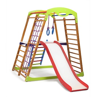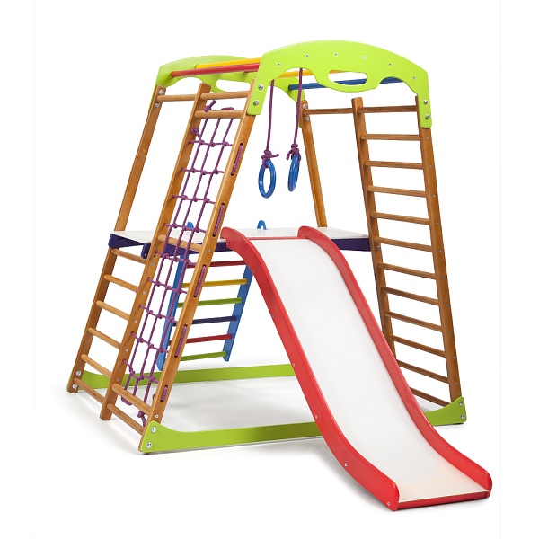 Детский спортивный комплекс для дома BabyWood Plus 2– это усовершенствованная и улучшенная модификация спортивного комплекса BabyWood. Как и его предшественник, он укомплектован универсальными спортивными атрибутами для физического развития ребёнка: В комплектацию изделия входят следующие спортивные элементы: 1. Шведская стенка. 2. Гладиаторская сетка. 3. Рукоход 4. Детская горка. 5. Кольца. 6. Столик 7. Лестница А для интеллектуального и художественного развития ребёнка, BabyWood Plus дополнен оригинальными развивающими элементами: яркими счётами; двухсторонним мольбертом с белой и чёрной основой для рисования и мелками, и маркерами. Все элементы этого спортивного уголка функциональны. Даже округлые ручки наверху изделия можно использовать и для переноски, и для крепежа дополнительных спортивных элементов. Их вы также можете приобрести в нашем интернет-магазине. Для безопасности рекомендуем купить мат гимнастический.