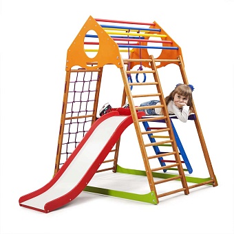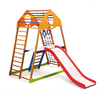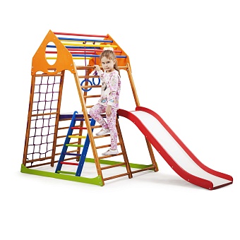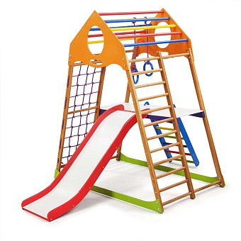 Домашний спортивный комплекс превратит любую детскую комнату в территорию настоящих развлечений. Кроме того, что это отличная возможность повеселиться, конструкция также позволяет ребенку получить полноценную физическую нагрузку. Наш детский спортивный комплекс для дома KindWood Plus 2 купить необходимо для того, чтобы дети могли регулярно тренироваться в домашних условиях, и просто весело проводить свободное время. Этот снаряд оснащен необходимыми спортивными элементами, которые помогут ребенку физически, а также интеллектуально развиваться. Рукоход, гладиаторская сетка, гимнастические кольца, шведская стенка, горка, столик, лестница - это атрибуты настоящего юного спортсмена. Кроме того, на детский спортивный комплекс для дома KindWood Plus 2 цена Вас порадует. Его мультифункциональность и качество вполне оправдывают стоимость. Пользу такого снаряда сложно переоценить. Ребенок может начать его использовать задолго до того, как пойдет в детский сад. А двигательная активность в раннем возрасте положительно влияет на здоровье малыша. Данные спортивные элементы позволят развить силу и ловкость малыша, укрепить мышцы, оппорно-двигательный аппарат, а также помогут предотвратить различные заболевания. Если у Вас есть детский спортивный комплекс для дома киндвуд плюс 2 отзывы можно оставить у нас на сайте. Яркие и насыщенные цвета, разнообразие оборудование и большое количество возможностей, которые предоставляет снаряд не оставят детей равнодушными.
