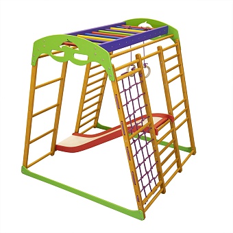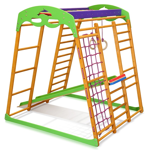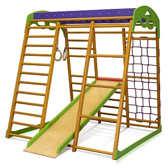 Детский спортивный комплекс для квартиры «Карамелька мини» красивого и насыщенного карамельного оттенка изготовлен из натурального дерева. отечественный производитель торговая марка «SportBaby» специализируется на производстве высококачественной продукции преимущественно из натуральных материалов, которые отличаются экологичностью и безопасностью. Данная модель сделана из древесины сосны, перекладины входящей в состав шведской стенки и рукохода сделаны из прочного бука. Спорткомплекс предназначен для спортивных упражнений и игр детей младшего возраста и может выдерживать максимально допустимые нагрузки в 40 килограмм.