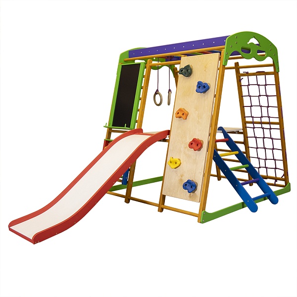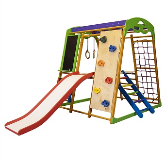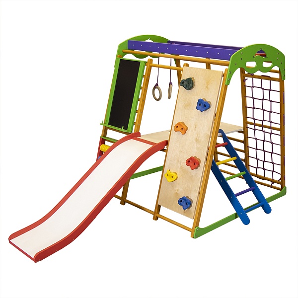 Дети очень нуждаются в движении, поэтому крайне важно удовлетворять эту потребность растущего организма. Как это сделать? Ответ, на самом деле, очень прост: достаточно для квартиры детский спортивный комплекс карамелька plus 5 купить и поставить в комнате малыша или в любом другом месте, где играют дети. Такая конструкция не только подарит море позитивных эмоций ребенку, но и принесет очень много пользы. Сооружение оснащено несколькими элементами, которые всесторонне развивают малыша. К тому же, здесь есть не только спортивное оборудование. Для того, чтобы кроха обучался основам математики, в комплекте имеются цветные счеты. А для развития творческих способностей предусмотрен мольберт. Укрепляться физически ребенку поможет такое оборудование как шведская стенка, гладиаторская сетка, рукоход, лесенка, гимнастические кольца и любимая всеми детьми горка. Также есть столик для проведения более спокойных игр или для отдыха. Приобрести для квартиры детский спортивный комплекс карамелька plus 5 цена позволяет. Ту пользу, которую снаряд приносит ребенку и его многофункциональность оправдывают стоимость. Конструкция сделана из натуральных материалов, а также является абсолютно безопасной для детей. Благодаря своим компактным размерам, спорткомплекс поместится в маленькой квартире и будет уместно смотреться в детской комнате. Ребенку нужна регулярная физическая нагрузка. Данная конструкция вполне поможет с этим справиться. Она также отлично заменяет уличную детскую площадку в плохую погоду. Таким образом, у малыша всегда будет доступ к игровому пространству. Если у Вас уже есть для квартиры детский спортивный комплекс карамелька plus 5 отзывы можно оставить здесь. Занимаясь на этом снаряде, ребенок будет постепенно развиваться и готовиться к школе.