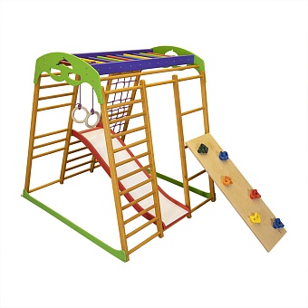 Дети очень нуждаются в движении, поэтому крайне важно удовлетворять эту потребность растущего организма. Как это сделать? Ответ, на самом деле, очень прост: достаточно для квартиры детский спортивный комплекс карамелька plus 6 купить и поставить в комнате малыша или в любом другом месте, где играют дети. Такая конструкция не только подарит море позитивных эмоций ребенку, но и принесет очень много пользы. Сооружение оснащено несколькими элементами, которые всесторонне развивают малыша. К тому же, здесь есть не только спортивное оборудование. Для того, чтобы кроха обучался основам математики, в комплекте имеются цветные счеты. А для развития творческих способностей предусмотрен мольберт. Укрепляться физически ребенку поможет такое оборудование как шведская стенка, гладиаторская сетка, рукоход, лесенка, гимнастические кольца и любимая всеми детьми горка. Приобрести для квартиры детский спортивный комплекс карамелька plus 6 цена позволяет. Ту пользу, которую снаряд приносит ребенку и его многофункциональность оправдывают стоимость. Конструкция сделана из натуральных материалов, а также является абсолютно безопасной для детей. Благодаря своим компактным размерам, спорткомплекс поместится в маленькой квартире и будет уместно смотреться в детской комнате. Ребенку нужна регулярная физическая нагрузка. Данная конструкция вполне поможет с этим справиться. Она также отлично заменяет уличную детскую площадку в плохую погоду. Таким образом, у малыша всегда будет доступ к игровому пространству. Если у Вас уже есть для квартиры детский спортивный комплекс карамелька plus 6 отзывы можно оставить здесь. Занимаясь на этом снаряде, ребенок будет постепенно развиваться и готовиться к школе.