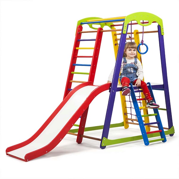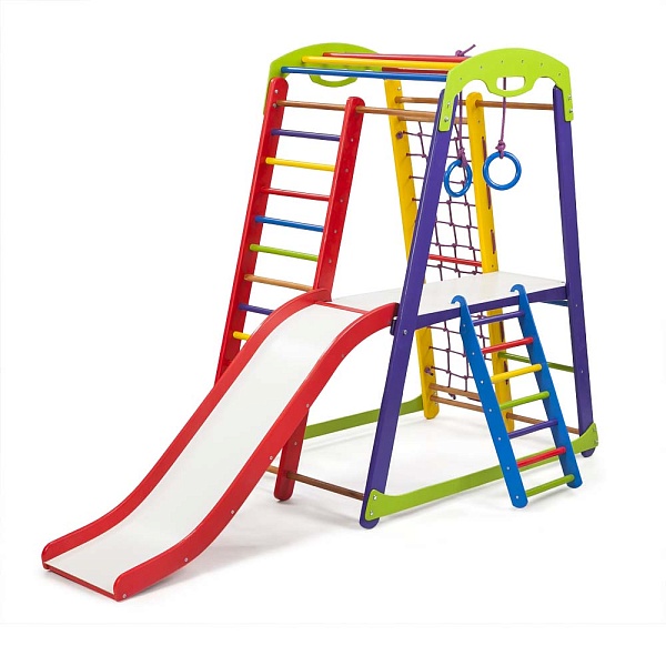 Для малыша очень важно физическое развитие, и в этом отлично поможет спортивный уголок для дома. Это позволит ребенку все время находится в движении, независимо от погоды и других обстоятельств. Более того, такая конструкция подарит много позитивных эмоций малышу. Вы можете детский спортивный уголок кроха 1 plus 2 купить в нашем магазине. Он обязательно понравится Вашему ребенку. Здесь есть все необходимое для него. Сооружение представляет из себя безопасный и компактный спортивно-игровой комплекс, который не требует дополнительного крепления. Изделие выполнено из экологически чистого бука, а его поверхность тщательно обработана. Кроме того, на детский спортивный уголок кроха 1 plus 2 цена доступна. Такие спортивные элементы как рукоход, гладиаторская сетка, “шведка”, гимнастические кольца, лесенка, горка помогут малышу физически развиваться и просто весело проводить свое время в домашних условиях. Вес пользователя не должен превышать 60 кг. Детский спортивный комплекс принесет много пользы и радости ребенку дошкольного возраста и начальных классов. Это позволит улучшить не только его физическое состояние, но и психологическое здоровье. Регулярно занимаясь на таком мультифункциональном тренажере, Ваш малыш постепенно будет привыкать к активному образу жизни и всесторонне развиваться.