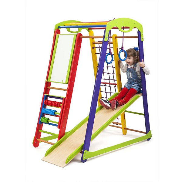 Маленькие дети нуждаются в физической нагрузке регулярно. Однако не всегда есть возможность провести время на улице. К тому же далеко не каждый ребенок любит заниматься спортом. Для таких случаев подойдет детский спортивный комплекс кроха 1 цена на который невысокая. Он позволит любому малышу получить полноценную физическую нагрузку в игровой форме. Конструкция станет отличным дополнением в любом доме, где есть дети. Она хорошо впишется в интерьер детской комнаты, а также принесет много пользы ребятишкам от полугода до 6-7 лет. Здесь ребенок сможет не только развлекаться, но и заниматься спортом. В его распоряжении такое оборудование как шведская стенка, гладиаторская сетка, рукоход, кольца и горка. Высота изделия составляет 150 см. Самый большой вес, который способна выдержать конструкция - 60 кг. Выполнено сооружение из дерева, которое обработано гипоаллергенными веществами. Такой детский спортивный комплекс кроха 1 купить необходимо для того, чтобы предоставить своему ребенку полноценно развиваться. «Кроха 1 мини» соответствует всем требованиям безопасности и удовлетворяет потребности любого ребенкаа. Это отличная возможность развлечься и повеселиться даже тогда, когда на улице нелетная погода. Вы можете оставить на детский спортивный комплекс кроха 1 отзывы , выбрав необходимый раздел. Такой яркий и мультифункциональный снаряд не оставить безразличным ни одного малыша.
