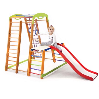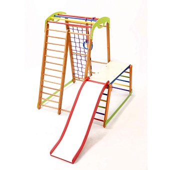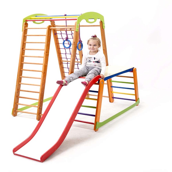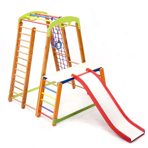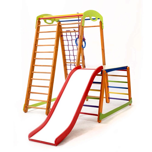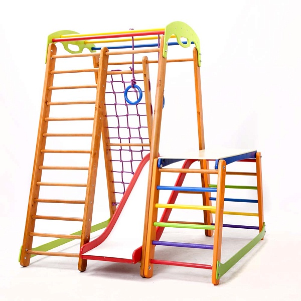 У детей всегда много энергии. Они активны и жизнерадостны, поэтому любят подвижные игры. И для того, чтобы малыш направлял свою неугомонную энергию в нужное русло, нужно предоставить ему для этого все необходимые условия. В данном случае можно детский спортивный уголок - Кроха - 2 Plus 1-1 купить и подарить своему ребенку возможность активно и весело проводить время. Этот яркий снаряд не оставит ни одного малыша равнодушным. Элементы, которые входят в комплектацию очень разные, но одинаково полезные для ребенка. Например, шведская стенка способна заменить множество других тренажеров благодаря своей универсальности и функциональности. Кроме того, оборудование состоит из гладиаторской сетки, рукохода, детской горки, гимнастических колец, а также здесь есть стол-пристройка к спортивному уголку. Вас порадует на детский спортивный уголок - Кроха - 2 Plus 1-1 выгодная цена и высокое качество товара. Все поверхности изделия тщательно обработаны, что предотвращает получение травм и царапин. Данный спортуголок не требует дополнительного крепления. Размеры сооружения достаточно компактные, что позволяет использовать его в небольших помещениях. Переоценить пользу, которую способен принести данный комплекс сложно. Спортивно-игровое оборудование - это не только развлечение, но и хорошая профилактика плоскостопия, проблем с позвоночником, вестибулярным, опорно-двигательным аппаратом и многих других. Это вполне объясняет то, что на детский спортивный уголок - Кроха - 2 Plus 1-1 позитивные отзывы и его покупают довольно часто. Это лучший подарок для малыша.