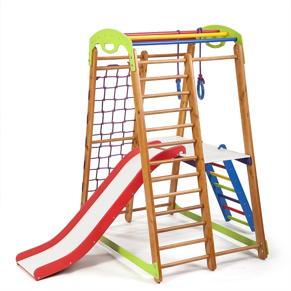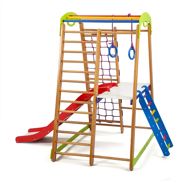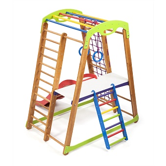 Здоровый и крепкий ребенок - это мечта любого родителя. А для того, чтобы это было реальностью, необходимо прививать полезные привычки своему малышу еще в раннем возрасте. Мы рекомендуем детский спортивный уголок кроха 2 plus 2 купить и подарить ребенку возможность развлекаться и одновременно заниматься спортом прямо у себя дома. Это отличное решение, так как прогулка на улице не всегда возможна по разным причинам. А домашний спортуголок позволяет играть и тренироваться в любое удобное время. Это спортивно-игровой комплекс, который подходит для детей дошкольного возраста. На нем также могут заниматься ребята постарше. Главное условие - максимальный вес пользователя не должен быть больше 60 кг. Сам тренажер весит 35 кг. Он отличается небольшими размерами: высота -150 см, ширина - 85 см. На детский спортивный уголок кроха 2 plus 2 цена выгодна и доступна. Выполнен он из натурального материала. Здесь есть все необходимое, чтобы малыш получал полноценную физическую нагрузку: спортивная стенка, рукоход, кольца, гладиаторская сетка. Для того, чтобы ребенок отдохнул после подвижных игр в комплекте имеется столик. А такое сооружение как горка не оставит ни одного малыша равнодушным. Спорткомплекс дает преимущества не только ребенку, но и родителям. Пока чадо весело проводит время дома, взрослые могут заниматься своими делами, и одновременно присматривать за малышом. Мы будем рады получить на детский спортивный уголок кроха 2 plus 2 отзывы , и обязательно Вам ответим. Будьте уверены, такой снаряд станет любимым местом для игр любого крохи, ведь здесь очень интересно, весело и ярко.