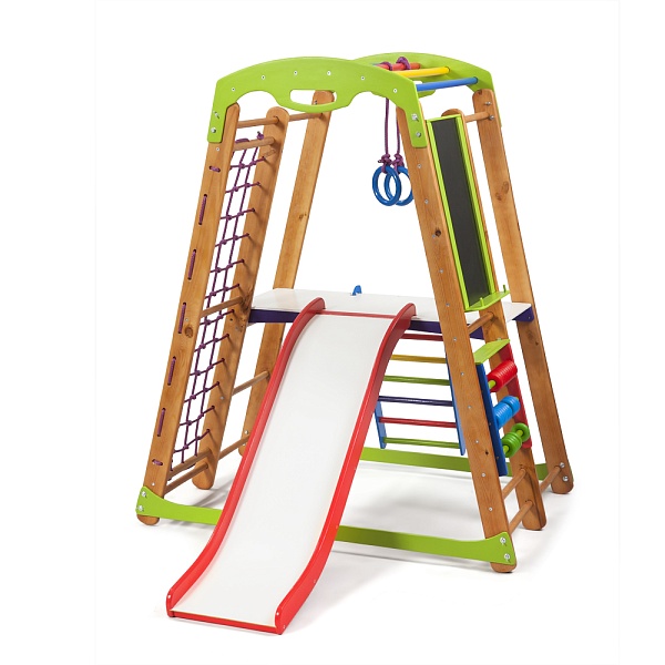 Ребенок должен много двигаться - это известный факт. От физической активности малыша зависит состояние его здоровья, настроение и даже внешний вид. К счастью, все дети сами по себе подвижны и энергичны, однако, если поставить дома спорткомплекс, это принесет еще больше пользы. Мы рекомендуем приобрести детский спортивный уголок кроха 2 plus 3 цена которого Вас порадует. Это отличное решение для того, чтобы малыш всесторонне развивался. Данный комплекс предоставляет множество возможностей ребенку: это и спорт, и творчество, и даже развитие математических способностей с помощью цветных счетов. В распоряжении малыша такое оборудование рукоход, гладиаторская сетка, кольца, лесенка, шведская стенка, столик и даже горка. А на мольберте ребенок может учиться рисовать или писать мелками или маркером. Наш детский спортивный уголок кроха 2 plus 3 купить выгодно потому что он не занимает много места в помещении и является многофункциональным. Изделие выполнено из качественных и натуральных материалов, а его поверхности хорошо обработаны. “Кроха 2 plus 3” будет интересным и привлекательным для любого малыша. Кроме того, что тренажер приносит много положительных эмоций ребенку, он также позволяет укрепиться физически, найти себя в творчестве и развить умственные способности. Если Вы захотите оставить на детский спортивный уголок кроха 2 plus 3 отзывы это можно сделать на нашем сайте. Будьте уверены, Ваш малыш обязательно оценит такой интересный и яркий снаряд.
