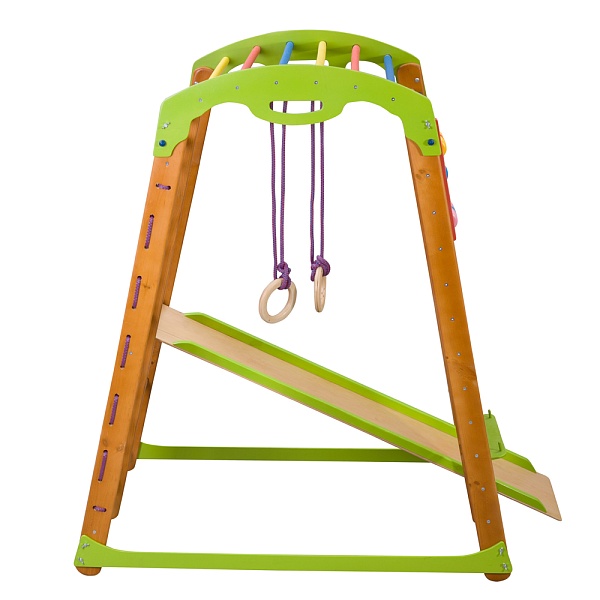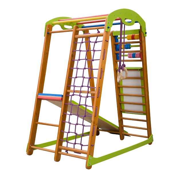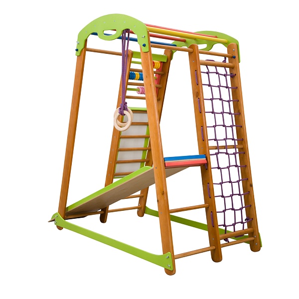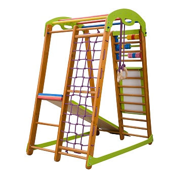 Детский спортивный уголок - «Кроха - 2» - многофункциональная модель, расчитанная на малышей раннего возраста. Этот спорткомплекс можно назвать настоящим игровым городком со шведской стенкой, горкой, гладиаторской сеткой и гимнастическими кольцами, довольно органично дополненными ещё одним очень полезным и увлекательным спортивным снаряжением – рукоходом. Приобретая такой спортивно-игровой комплекс для своего ребёнка, Вы обеспечите ему хорошее настроение в любое время и в любую погоду, прямо не выходя из дома. Кроме того, эта модель позволяет ребёнку укреплять своё здоровье, тренируя и развивая мышцы.