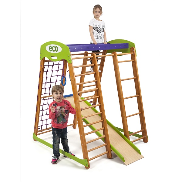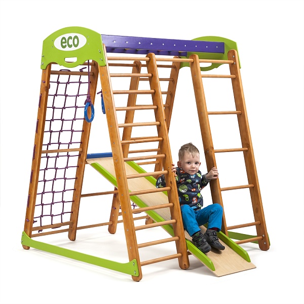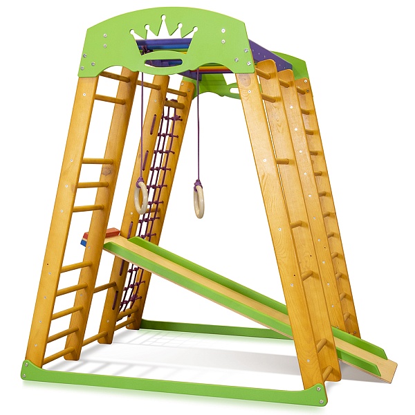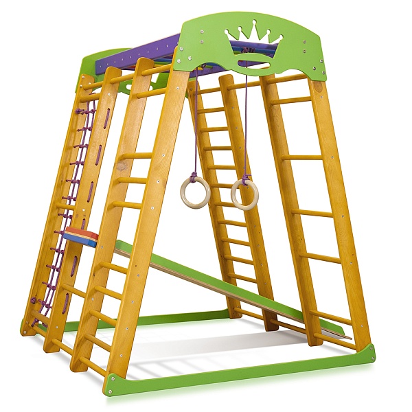 Спортивный комплекс для дома «Карапуз мини» предназначен для занятий спортом и активных подвижных игр. Использовать его можно деткам в возрасте уже от одного года. Он станет прекрасным спортивным уголком для Вашего ребенка, который поможет малышу ему развить ловкость, силу, улучшить координацию движений, мелкую моторику и реакцию. Уголок сделан из высококачественных материалов – экологически чистой натуральной древесины сосны и бука. В его состав входит популярный гимнастический снаряд шведская стенка, рукоход, гладиаторская сетка, гимнастический кольца и любимое детское развлечение – горка для веселых спусков.