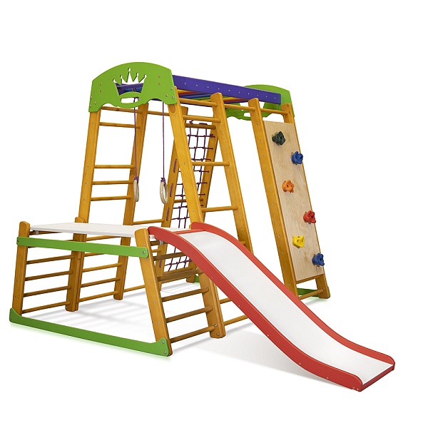 Детские спортивные уголки от SportBaby достойны внимания благодаря своему высокому качеству и разнообразию. Мы также рекомендуем Вам спортивный комплекс для дома Карапуз Plus 1-2 купить для своего ребенка. Это прекрасная возможность улучшить физическое состояние малыша и просто подарить ему приятные эмоции. Данный спортивно-игровой комплекс - настоящая находка для родителей, которые заботятся о здоровье своих детей, так как с его помощью можно полноценно заниматься спортом. Он обладает компактными размерами: его высота - 150 см, а весит он всего лишь 47 кг. Максимальный вес пользователя не должен превышать 60 кг. Изготавливался снаряд из экологически чистого бука, а гимнастические кольца, которые входят в комплект - из пластика. Кроме того, здесь есть рукоход, гладиаторская сетка, кольца, шведская стенка, стол-пристройка, скалолазка и даже любимая всеми малышами горка. На спортивный комплекс для дома Карапуз Plus 1-2 цена указана на сайте. Такой снаряд подойдет для малышей дошкольного возраста, а также для детей постарше (7-8 лет). Спорт уголок станет отличной альтернативой уличной детской площадке, так как прогулка на свежем воздухе не всегда возможна. Благодаря домашнему комплексу малыш всегда будет иметь доступ к любимым играм. На наш спортивный комплекс для дома Карапуз Plus 1-2 отзывы положительные, поэтому мы рекомендуем приобрести его для Вашего ребенка. Яркий и мультифункциональный тренажер - то, что нужно юному спортсмену.