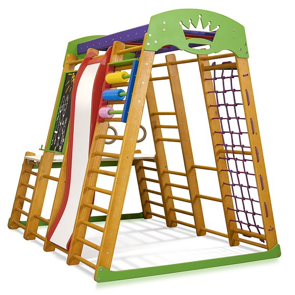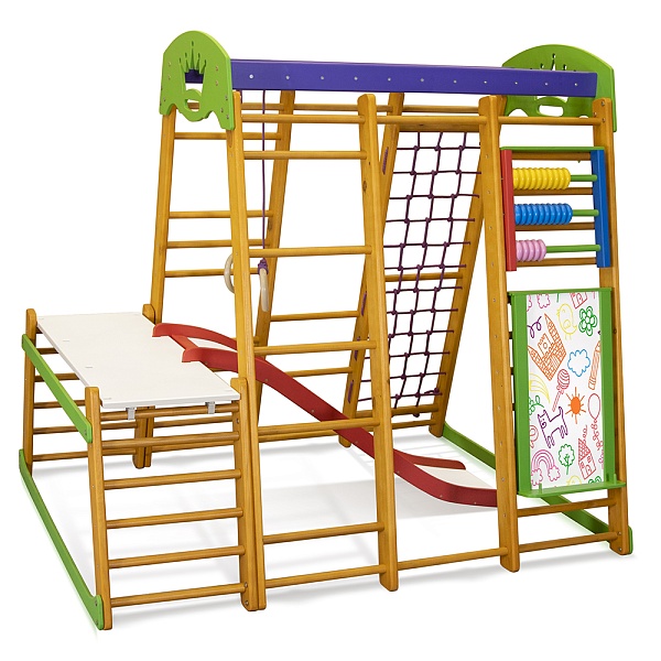 Детские спортивные уголки от SportBaby достойны внимания благодаря своему высокому качеству и разнообразию. Мы также рекомендуем Вам спортивный комплекс для дома Карапуз Plus 1-3 купить для своего ребенка. Это прекрасная возможность улучшить физическое состояние малыша и просто подарить ему приятные эмоции. Данный спортивно-игровой комплекс - настоящая находка для родителей, которые заботятся о здоровье своих детей, так как с его помощью можно полноценно заниматься спортом. Он обладает компактными размерами: его высота - 150 см, а весит он всего лишь 44 кг. Максимальный вес пользователя не должен превышать 60 кг. Изготавливался снаряд из экологически чистого бука, а гимнастические кольца, которые входят в комплект - из пластика. Кроме того, здесь есть рукоход, гладиаторская сетка, кольца, шведская стенка, стол-пристройка, мольберт, счеты и даже любимая всеми малышами горка. На спортивный комплекс для дома Карапуз Plus 1-3 цена указана на сайте. Такой снаряд подойдет для малышей дошкольного возраста, а также для детей постарше (7-8 лет). Спорт уголок станет отличной альтернативой уличной детской площадке, так как прогулка на свежем воздухе не всегда возможна. Благодаря домашнему комплексу малыш всегда будет иметь доступ к любимым играм. На наш спортивный комплекс для дома Карапуз Plus 1-3 отзывы положительные, поэтому мы рекомендуем приобрести его для Вашего ребенка. Яркий и мультифункциональный тренажер - то, что нужно юному спортсмену.