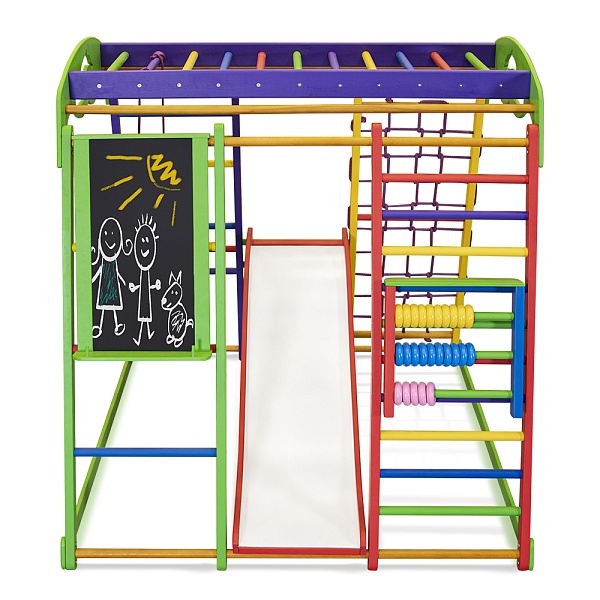 Для того, чтобы малыш правильно развивался, ему нужна физическая активность. К счастью, все дети по своей природе энергичны и всегда находятся в движении. Необходимо позаботиться о том, чтобы ребенок со временем не потерял свою динамичность и всегда занимался спортом. Для этого можно спортивный комплекс для дома Юнга Plus 7 купить и поставить в том помещении, где обычно играют дети. Он также будет уместным в квартире или во дворе загородного дома. Спорткомплекс “Юнга Plus 7” предоставляет массу возможностей малышам. Здесь можно и заниматься спортом, и рисовать на мольберте, и даже обучаться основам математики с помощью цветных счетов. И самое главное, это не будет вызывать скуку у ребенка, так как все элементы отличаются яркими и насыщенными цветами. А чего только стоит шведская стенка, которая предоставляет массу возможностей? Благодаря этому снаряду, ребенок получит нагрузку на все группы мышц, ему также будет очень интересно залезть по ней наверх и слезть обратно, это своего рода достижение для малыша. Кроме того, здесь имеется такое оборудование, как гладиаторская сетка, рукоход, горка, кольца, цветные счеты и мольберт. На спортивный комплекс для дома Юнга Plus 7 цена выгодная и приятно Вас удивит. Размеры снаряда компактные: высота - 130 см, ширина - 124 см, а весит всего 34 кг. Данный многофункциональный тренажер способен прослужить долгое время. Занятия на таком снаряде будут интересны малышу, начиная с полугода. С его помощью ребенок будет расти и всесторонне развиваться. Чтобы оставить на спортивный комплекс для дома Юнга Plus 7 отзывы , воспользуйтесь специальной формой на нашем сайте. Приучайте своего кроху к активному образу жизни с ранних лет, чтобы он был крепким, сильным и здоровым.