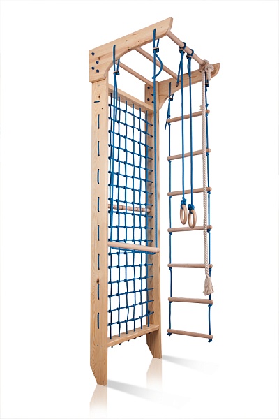 Компактный спортивный комплекс для ваших детей - гладиаторская сетка с турником "Bombino 8 - 240". Помимо самой гладиаторской сетки, удобной для лазания и игр, здесь есть прочный надёжный канат, верёвочная лестница, перекладина и гимнастические кольца. Деревянные элементы конструкции выполнены из сосны и бука, канат - из высококачественного хлопка, сетка - из экологичного полипропилена.