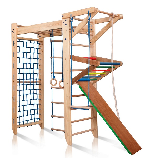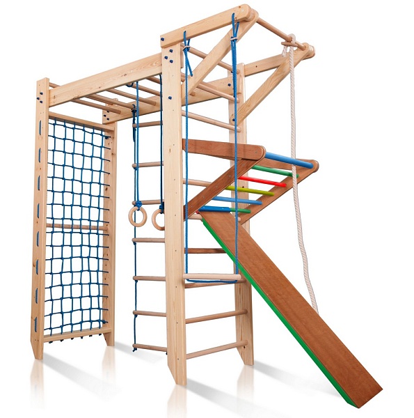 П-образный детский уголок - "Sport 5-220" позволяет приучить Вашего ребёнка к занятиям спортом с самого раннего детства. Данный инвентарь крайне необходим малышам, растущим гармоничными личностями, не имеющими никаких проблем со своим здоровьем. Занимаясь на П-образном детском уголке "Sport 5-220" ежедневно, Ваш ребёнок обязательно сможет избежать таких неприятностей, как ожирение или сколиоз. Оснащён спорткомплекс разнообразными полезными и интересными приспособлениями – гладиаторской сеткой, канатом, гимнастическими кольцами, трапецией, верёвочной лестницей, съёмным турником и доской для пресса.