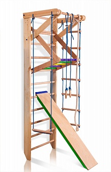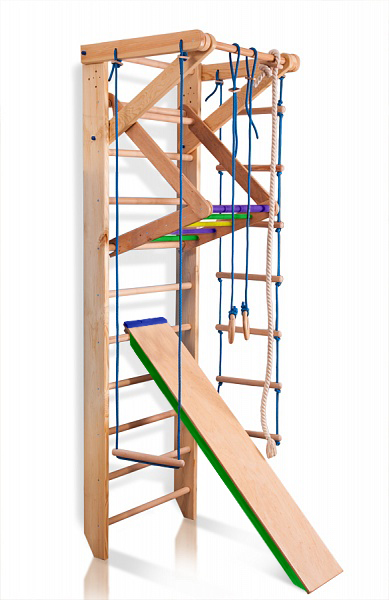 Приобретение спортивного уголка «Sport 3-240» является прекрасным способом приучить Вашего ребёнка к регулярным занятиям спортом. Благодаря постоянным физическим нагрузкам малыш сможет как следует укрепить своё здоровье, развить ловкость, гибкость, силу и выносливость, укрепить мышцы рук, ног и пресса. Кроме того, такой уголок позволит ребёнку проводить своё свободное время не только с пользой, но и с интересом. Установив в комнате Вашего чада данное оборудование, Вы дадите ему возможность тренироваться на шведской стенке, гимнастических кольцах, канате, верёвочной лестнице и съёмном турнике. Кроме того малыш сможет качать пресс на специальной прочной доске.