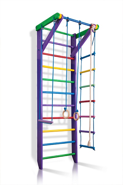 Его основа – классическая шведская стенка, оснащённая универсальным навесным оборудованием, которое поможет развить координацию движений, укрепить различные группы мышц, выработать правильную осанку и разнообразить досуг ваших детей.