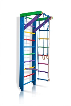 Спортивный уголок «Радуга 2-220» - модель, которая послужит настоящим игровым городком в деской комнате Вашего малыша. Оснащена модель следующим спортивным инвентарём: шведской стенкой, гимнастическими кольцами, навесной трапецией, верёвочной лестницей, канатам для лазания. Купив спортивный уголок «Радуга 2-220», вы в полной мере удовлетворите запросы даже самого активного маленького непоседы, дадите возможность малышу избавиться от лишней энергии, а также обеспечите собственный покой в доме, или же получите возможность спокойно заниматься домашними делами. Модель невероятно прочна и надёжна, поэтому заниматься на ней Ваш ребёнок сможет на протяжении нескольких лет.