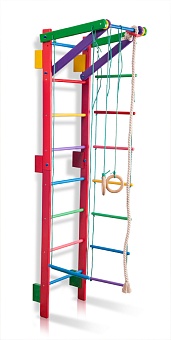 1. Шведская стенка с турником. 2. Канат. 3. Кольца. 4. Трапеция. 5. Веревочная лестница. А так же крепежный комплект. Для безопасности рекомендуем купить мат гимнастический. Детский спортивный уголок поставляется в разобранном виде.
