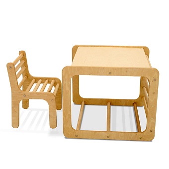 Комплект детской мебели Кубик поможет малышу в познании окружающего мира. Надежный и удобный дуэт стола и стульчика позволит своему юному обладателю полностью погрузиться в исследовательскую деятельность, а маме — не беспокоиться за безопасность своего чада. Преимущества: практичное использование — удобно как для учебы, так и для игр, рисования и занятий хобби; скругленные углы столешницы — минимизирован риск травмироваться; экологичные материалы — изготавливается из натурального дерева.