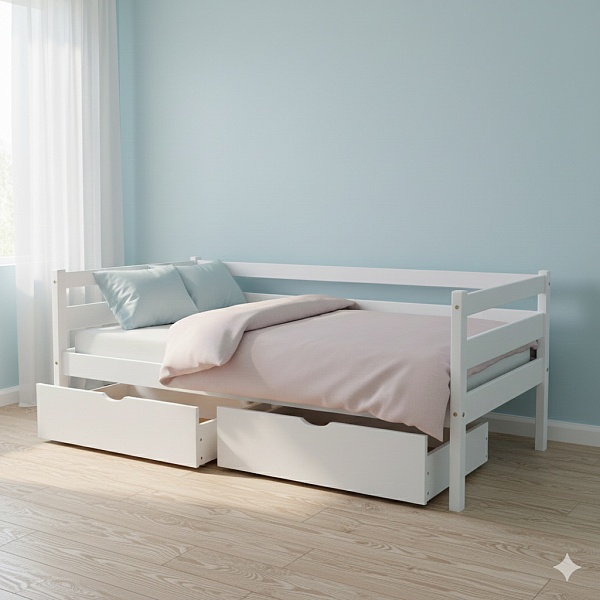 ОтзывыПодростковая кровать белая babyson 1 с ящиком 80x190см