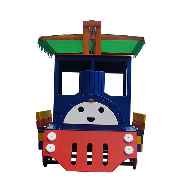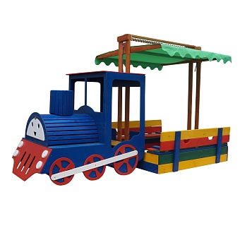 Все элементы песочницы-паровоза тщательно обработаны, отшлифованы до идеальной гладкости и покрыты сертифицированной водостойкой краской, которая придаёт изделию красивый яркий вид.