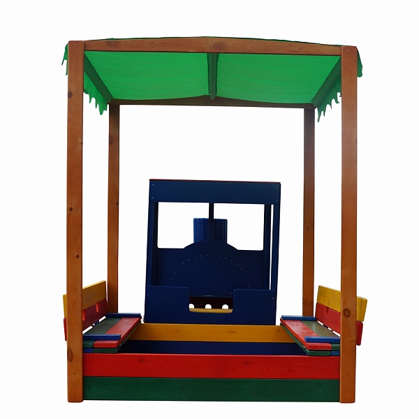 К тому же, благодаря удобным навесам над основанием песочницы и кабиной машиниста, которыми оснащена песочница-паровоз, увлекательные игры и приключения будут доступны вашему малышу в любую погоду.