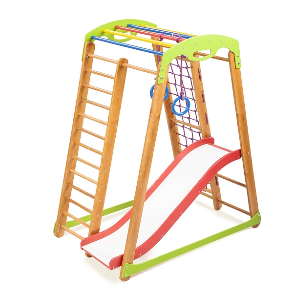 Когда дети маленькие, родители стараются сделать все возможное, чтобы они выросли здоровыми и сильными. Для этого необходимо прививать малышу правильные привычки с самых ранних лет, в том числе и любовь к спорту. В данном случае поможет детский спортивный уголок кроха 2 plus 1 купить который можно для ребенка дошкольного возраста. С помощью такого снаряда ребенок будет постепенно развивать свои физические способности. Здесь малыш может играть и тренироваться. Для этого предусмотрено такое оборудование как рукоход, лестница, гладиаторская сетка, шведская стенка, кольца, и конечно же любимая каждым ребенком горка. Высота изделия составляет всего 150 см, а ширина - 85 см, а это значит, что оно достаточно компактное и с легкостью поместится в небольшой квартире. Выполнен снаряд из бука и сосны, а кольца - из пластика. Не требует дополнительного крепления. Что касается стоимости, на детский спортивный уголок кроха 2 plus 1 цена приятно удивит нашего покупателя. Изделие выполнено с учетом всех требований безопасности. Этот тренажер поможет малышу достичь первых успехов. Это действительно хорошая возможность совместить спорт и развлечение, что очень важно для любого ребенка. Подарите своему крохе активное, здоровое и счастливое детство.