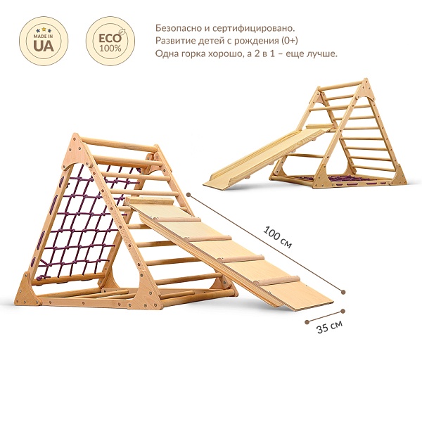 Комплектация Треугольник пиклера с сеткой от 2 месяцев 80 см лак + горка 100 см